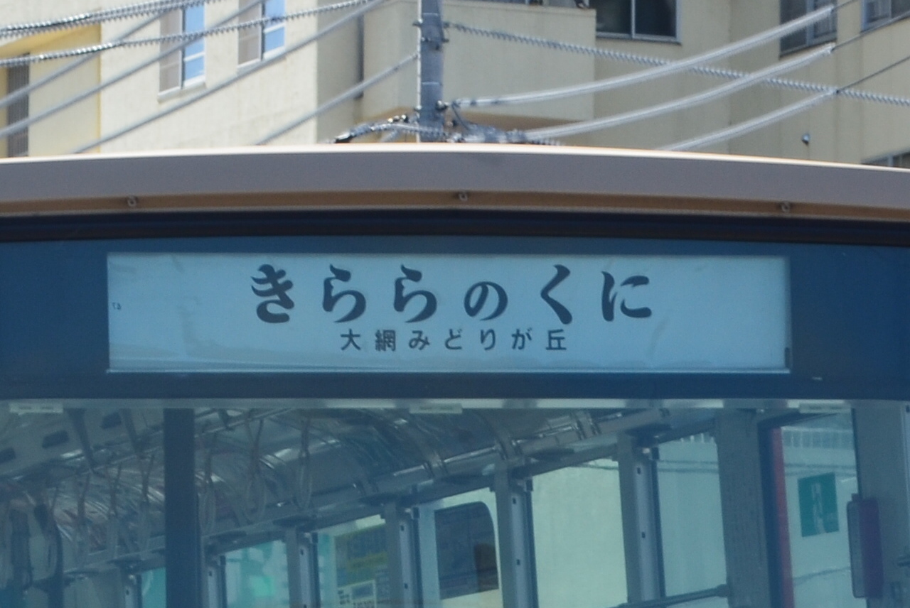 方向幕では明朝体でみどりが丘の愛称「きららのくに」と表記されている。 |